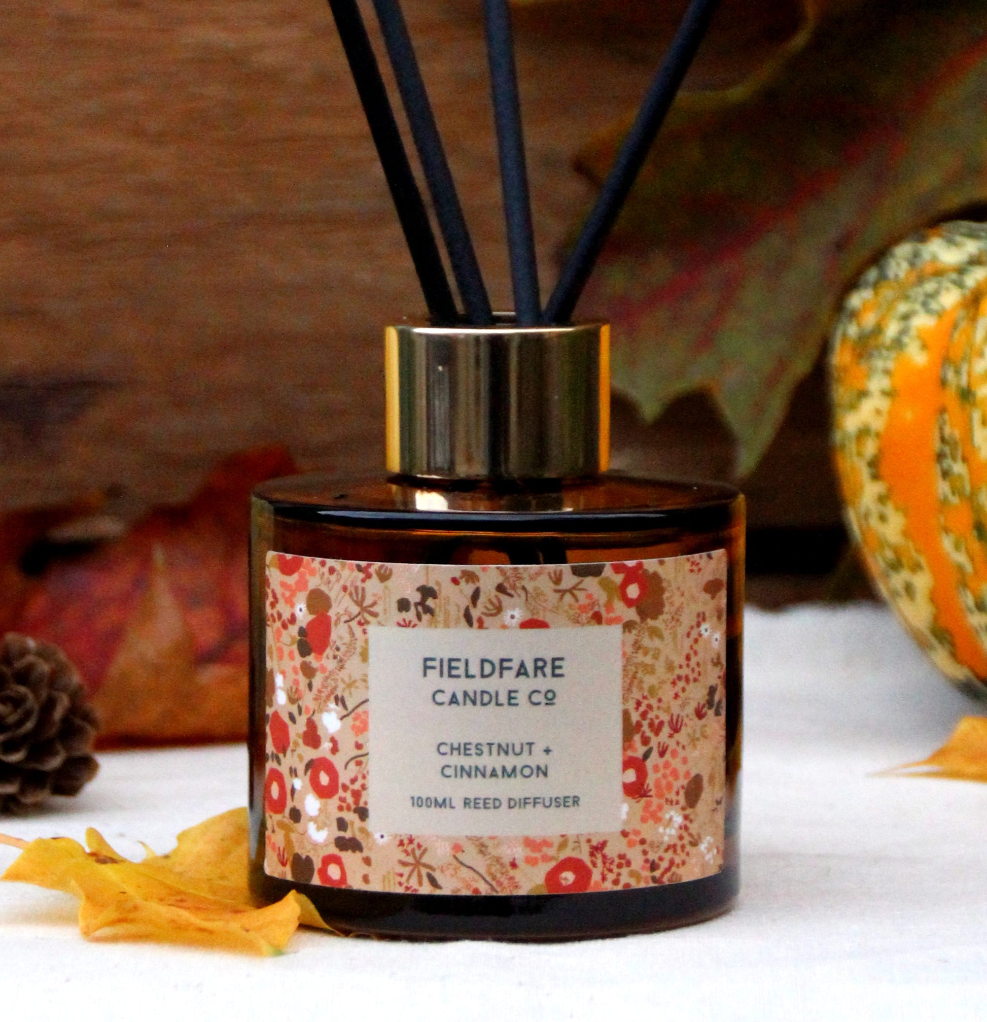 A sweet and cosy blend of cinnamon and roasted chestnuts underscored with caramelised sugar and vanilla. The quintessential scent of festive baking. Comes beautifully packaged in a patterned card box so perfect for gifting.