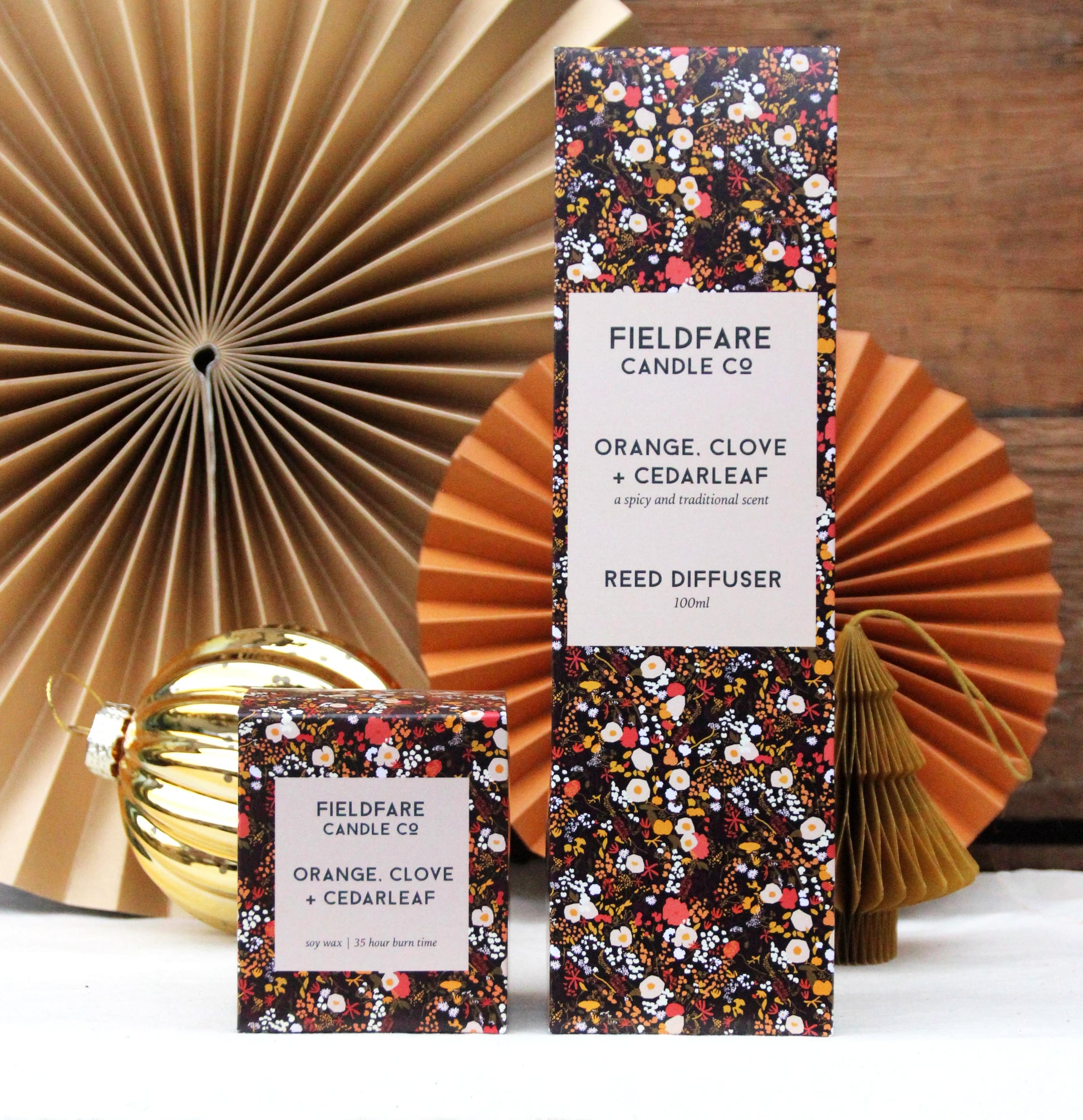 A traditional spicy blend of clove, cinnamon, lifted with fresh orange on a rich base of cedar and fir. A quintessential festive fragrance to conjure images of Christingle, chestnuts roasting & hot mulled wine.
